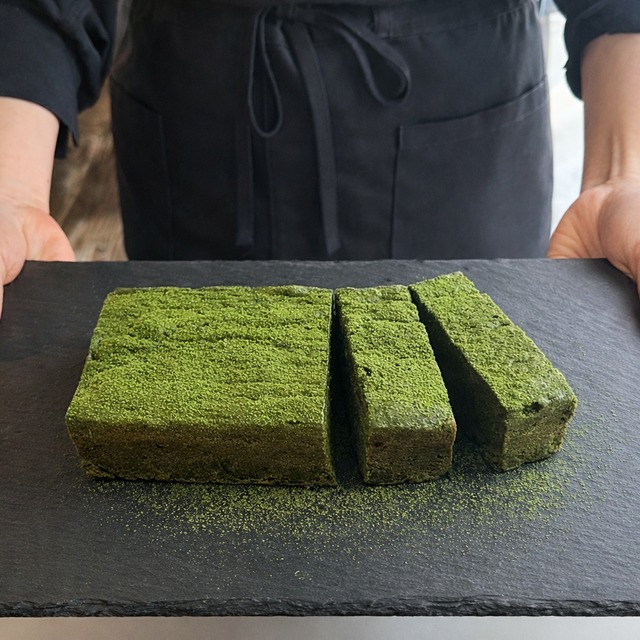 ※※※※※※※※※※※※※※※※※※ ※店頭ご希望のお客様はお電話にて承ります。 TEL0596-24-6747 10:00~17:00 混雑時は電話に出れない場合がございます。 ※※※※※※※※※※※※※※※※※※ 口当たりはふんわり軽いのにしっとり濃厚な味わいが口いっぱいに広がるこだわりの抹茶ガトーショコラが出来ました。 伊勢志摩サミットでも振舞われた上質な伊勢抹茶を贅沢にたっぷりと使用。 濃厚なお抹茶とほんのりチョコ感、ホロっとした口当たりのしっとり濃厚な味わいが口いっぱいに広がる伊勢抹茶ガトーショコラが出来ました。 三重県はお茶の栽培面積、生産量共に全国3位のお茶処、使用しているお抹茶は、色鮮やかな緑が特長の【おくみどり】 覆下栽培の期間が通常よりも長く、旨味成分を多く含んだ茶葉を石臼で丁寧に挽きました。小麦粉も三重県あやひかりを使用しています。 三重県の美味しい食材で出来た美味しいスイーツをぜひご賞味ください。 ※オススメのお召し上がり方 ガトーショコラは冷蔵庫に保存して開封後はお早めにお召し上がり下さい。温めた包丁でお好みのサイズにカットして、ホイップした生クリームや季節のフルーツ、小豆など、いろいろな食材と組み合わせてもお楽しみいただけます。 冷蔵・・・冷蔵庫から出しですぐはしっとり濃厚なガトーショコラをお楽しみいただけます 常温・・冷蔵庫から出し1時間程でふんわりホロホロとしたガトーショコをお楽しみいただけます 原材料名 ホワイトチョコ(国内製造)(砂糖、ココアバター、全粉乳、レシチン、香料、(原材料の一部に大豆を含む) 卵 トレハロース 生乳 抹茶(三重県産) グラニュー糖 バター 小麦 アレルギー一覧 卵・乳成分・小麦。 ※本製品製造工場では小麦を含む製品を製造しております。 内容量 1本約200g 賞味期限 冷蔵保存で製造日より7日(※在庫状況により、賞味期限の残存日数は若干短くなります。) ※開封後は早めにお召し上がりくださいませ。 栄養成分表示:50g当たり(推定値) エネルギー217㎉タンパク質4.1g脂質13.1g炭水化物 21.9g食塩0.4g 保存方法 冷蔵保存(10℃以下)